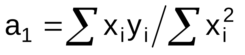 где y, x – независимые переменные; a1 – коэффициент, определяющий угол наклона прямой; a0 – отрезок, отсекаемый прямой на оси y.