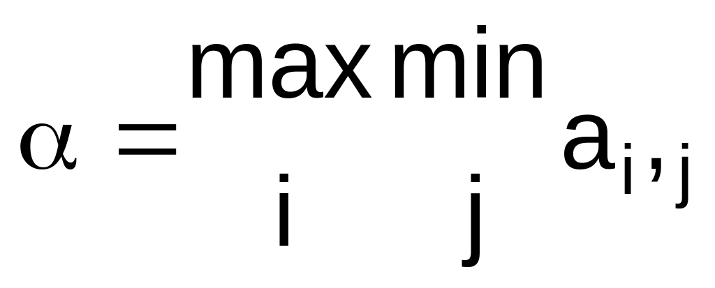 1. Максиминный критерий Вальда. В соответствии с этим критерием, если требуется гарантия, чтобы выигрыш в любых условиях оказывался не меньше, чем наибольший из возможных в худших условиях (т.е. линия поведения по принципу «рассчитывай на худшее»), оптимальным решением будет такое, для которого выигрыш окажется максимальным из всех минимальных при различных вариантах условий.