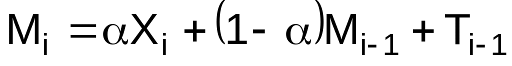При экспоненциальном сглаживании с учетом линейного тренда используется следующее соотношение: