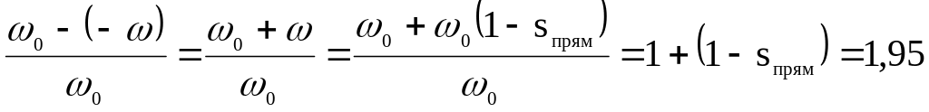 Если ротор привести во вращение в ту или иную сторону, то один из моментов будет больше другого. Допустим, ротор раскрутили по часовой стрелке и скольжение от прямого вращения достигло величины sпр=0.05, т.е. sпр = (0 - )/0 = 0.05.