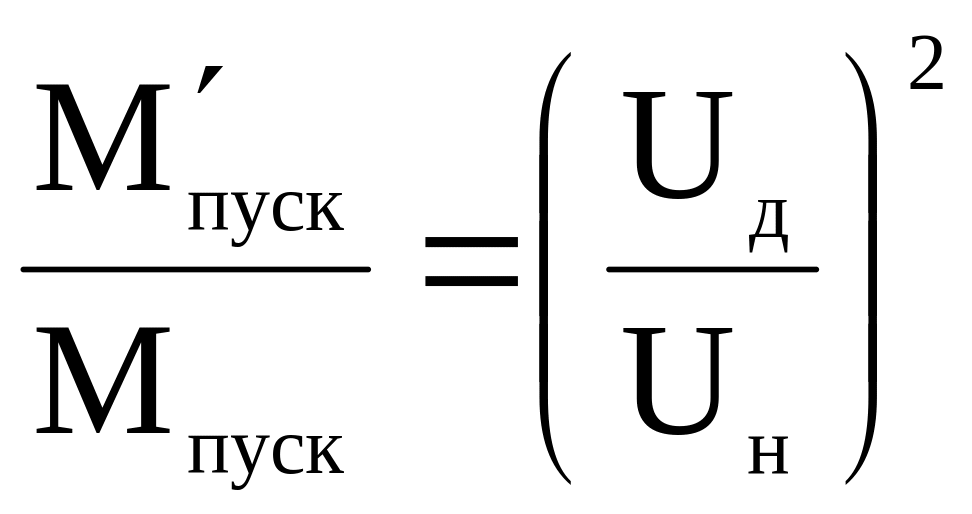 где Мпуск – пусковой момент двигателя при сниженном напряжении во время пуска;