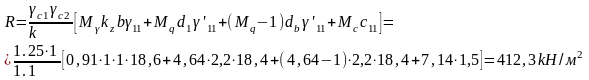 k=1.1 – якщо значення міцністних характеристик ґрунту (φ і c) прийняті по таблицях додатку 1,