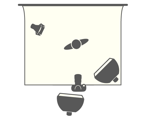 Как видим, тени получились достаточно глубокие. Для смягчения теней добавим еще один источник, разместив его фронтально, ближе к камере. В качестве светоформирующей насадки также используем софтбокс. Этот источник называется заполняющим. Как правило, используют насадки, смягчающие свет.