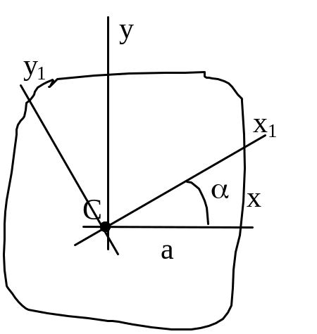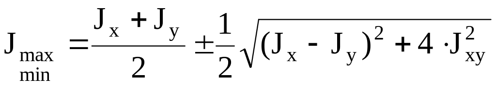 Jmax + Jmin= Jx + Jy. Центробежный момент инерции относительно главных центральных осей инерции равен 0. Если известны главные моменты инерции, то формулы перехода к повернутым осям: