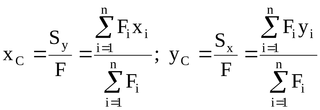 - •Просуммировав (проинтегрировав) такие произведения по всей площади фигуры, получаем статические моменты относительно осей y и X: ; [см3, м3, т.Д.].