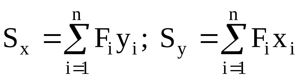 Просуммировав (проинтегрировав) такие произведения по всей площади фигуры, получаем статические моменты относительно осей y и X: ; [см3, м3, т.Д.].