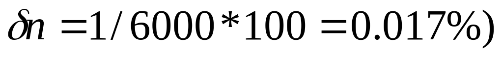 Оценка точности: даже промышленный частотомер обеспечивает точность измерения частоты не хуже чем в 1Гц , поэтому, если принять n = 6000 об/мин, f = 100 Гц или f = 100*60 = 6000 об/мин, то: