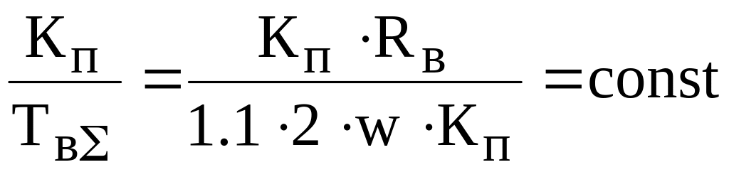 С ПИ-регулятором контур потока является астатическим как по заданию, так и по возмущению. Возмущение – изменение напряжения. Настройка контура является оптимальной только в одной расчетной точке при фиксированных Кп, Тв, Твт (см. рисунок 5.57).