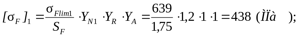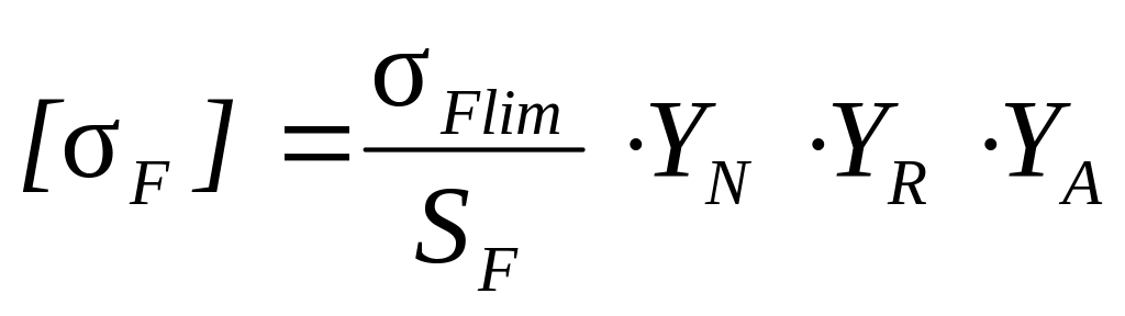 Допускаемые изгибные напряжения равны: