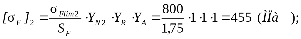 7.2.3 Допускаемые изгибные напряжения для тихоходной ступени