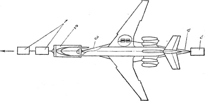 Примечания: а) В качестве транспортного средства можно использовать тягач (типа КрАЗ-255Б, МАЗ-537А и др.), в кузов которого уложены мягкие материалы, предохраняющие носовую часть самолета от повреждений.