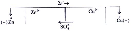 Із схеми видно, що в розчині катіони Zn2+ і Сu2+ переміщуються від цинкового електрода до мідного, а аніони SO42ˉ — у зворотному напрямку. Електрод, на якому відбувається процес окиснення, називається анодом, а електрод, на якому відбувається процес відновлення, — катодом. У мідно-цинковому елементі анодом є цинковий електрод, а катодом — мідний.