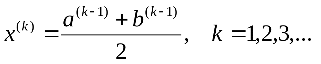 Послідовні наближення в методі половинного ділення обчислюються за ітераційною формулою
