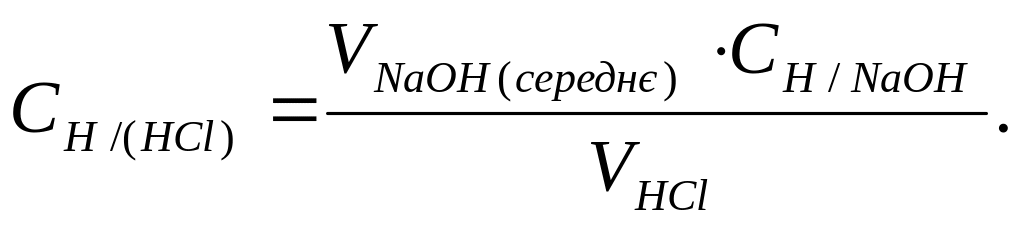 | № титрування | VHCl , мл | VNaOH , мл | СН. NaOH | СН. HCl |