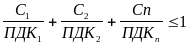 Экологические показатели качества являются нормативными и поэтому отношение фактических концентраций вредных веществ (С1, С2, Сm) или фактических уровней вредных веществ (В1, В2, Вn) к предельно допустимой концентрации соответствующих вредных веществ (ПДК1, ПДК2 и ПДКn) или предельно допустимым уровнем вредных воздействий на природную среду должно быть меньше или равным единице: