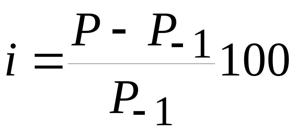 де - темп інфляції (i); період (t); індекс цін в базовому періоді береться за 100%: і = Р – 100; індексі цін попереднього періоду (Р-1).