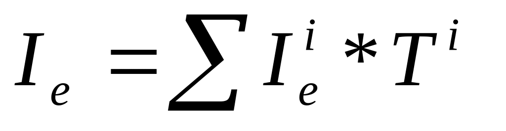 Багатосторонній (ефективний) валютний курс обчислюється як середньозважений індекс (Іе) на базі індексів двосторонніх курсів національної валюти щодо валют основних торговельних партнерів країни (Іеі). При цьому частка кожного торговельного партнера у валютному кошику визначається його часткою у зовнішньому товарообороті даної країни (Ті):