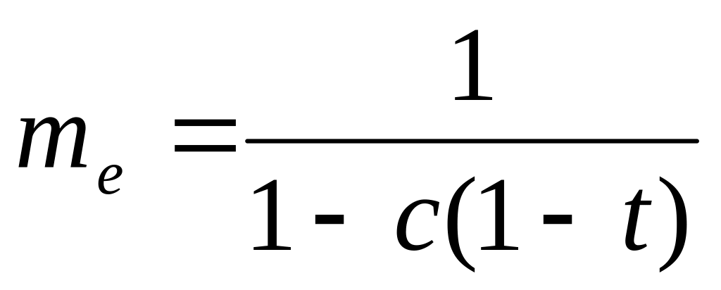 Множник 1/(1–MPC) називається мультиплікатором видатків. Він показує, на яку величину змінюється ВВП (наслідок) при збільшенні автономних видатків на одиницю (причина). Позначимо мультиплікатор видатків через Me і запишемо його формулу: Me = 1/(1-MPC)
