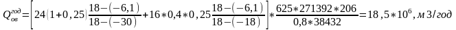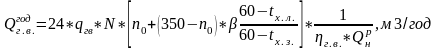 Годовой расход газа на отопление, вентиляцию жилых и общественных зданий определяется по формуле: