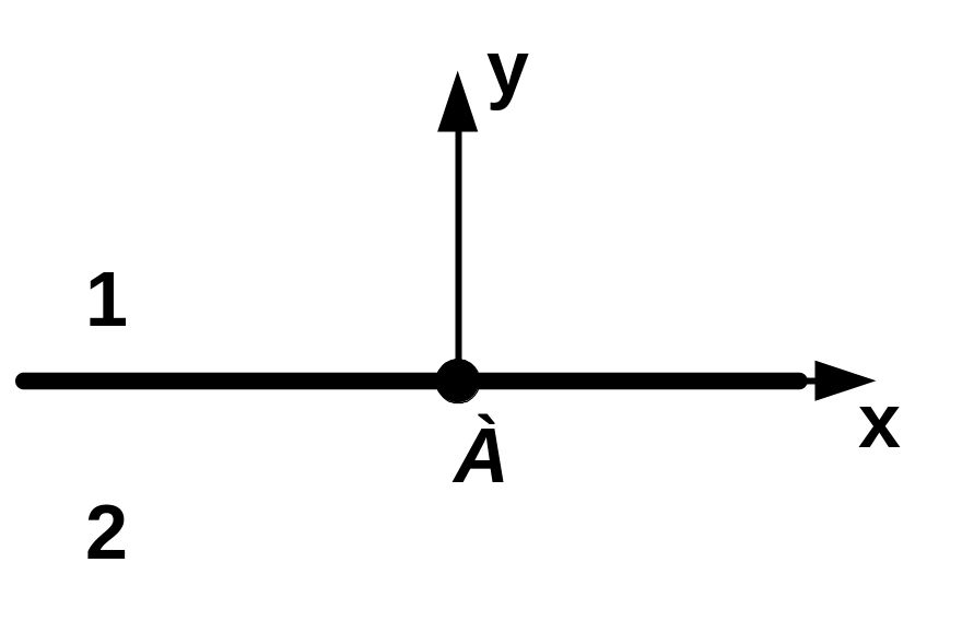 17. На плоской границе раздела двух диэлектриков (1= 6 0, 2= 2 0) отсутствует поверхностный заряд. В первом диэлектрике вблизи точки А Ex=90 В/см, Ey=60 В/см. Чему равна компонента Ex у точки А во втором диэлектрике?
