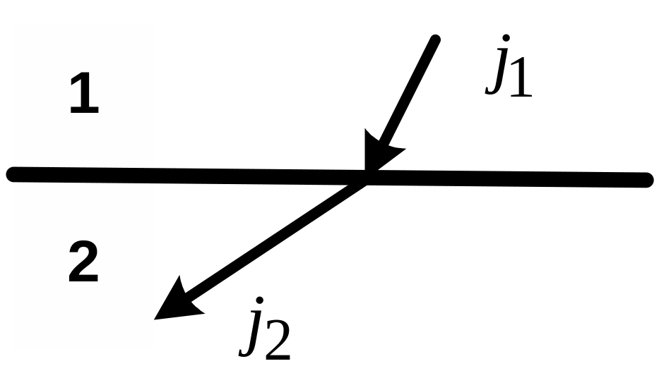 12. Для заданного изменения вектора плотности тока вблизи границы двух сред определить, проводимость какой среды выше?