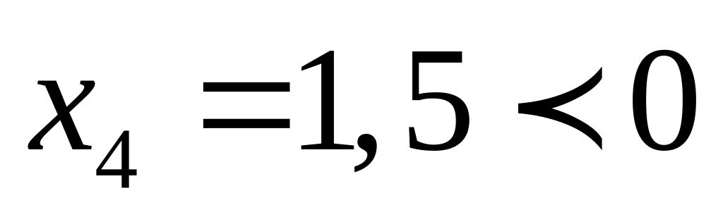 Серед базисних змінних від’ємні значення відсутні, отже, отриманий розв’язок є допустимим, а з урахуванням виконання умов оптимальності маємо оптимальний розв’язок. Цей розв’язок відповідає т. В(x1 = 2, x2 = 4) на рис. 3.1.