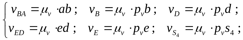 Таблица 3.2 – Скорости точек и угловые скорости звеньев механизма