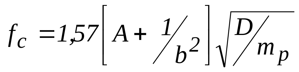 По таблице Б.14 определяется значение для выбранного варианта закрепления. Находятся значения D и . Расcчитывается собственная частота.