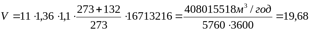 V – объем газов, м3/с, определяется по формуле