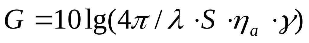 Коэффициент усиления антенны при отсутствии больших неоднородностей поверхности зеркала рассчитывается по формуле: