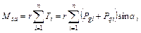 Момент сил, вращающих отсек вокруг т. О, определится как: