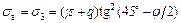 Грунт в пределах призмы обрушения ОАВ (рис. 4.8) находится в состоянии предельного равновесия. Минимальное главное напряжение σ3, равное активному давлению σа, связано с максимальным главным напряжением условием предельного равновесия: