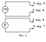 Соберите схему представленную на рис. 5, в качестве источников сигналов используются генератор звуковых частот и генератор напряжений, осциллограф должен находиться в режиме суммирования колебаний I+II. Для переключения режима осциллографа нажмите кнопку «режим» и «+/-».