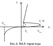 Вольтамперная характеристика (ВАХ) оптотиристора аналогична ВАХ однооперационного тиристора (рис.4).
