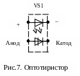 Оптический тиристор (оптотиристор) представляет собой полупроводниковую структуру, показанную на рис.7 и сочетающую в одном корпусе светодиод и управляемый световым потоком динистор.