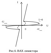 Вольтамперная характеристика (ВАХ) симистора показана на рис.6. ВАХ имеет одинаковые формы прямой и обратной ветвей.