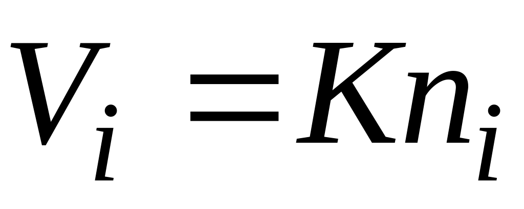Зависимость между объемной и мольной концентрациями компонентов вытекает из закона Авогадро. Так как равные объемы любых газов при одинаковых температуре и давлении содержат одинаковое число молекул, то объем i-го компонента смеси будет пропорционален числу молей i-го компонента: