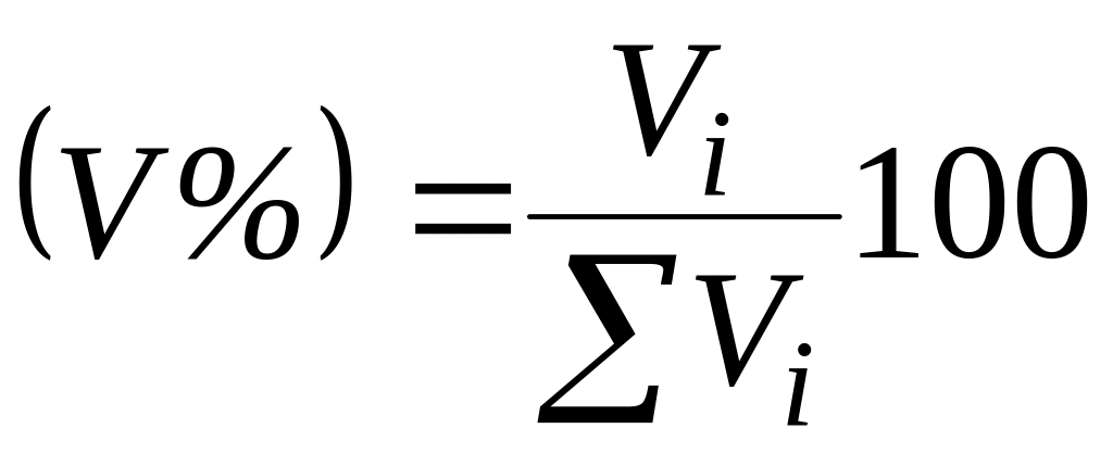 где Vi - объем i-го компонента в смеси; Σ Vi - суммарный объем газа.