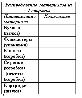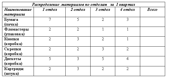 Составьте формулу для подсчета общего количества каждого вида распределяемого материала, заполните столбец Всего.