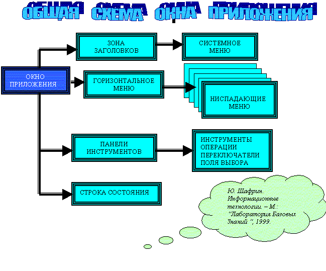 С помощью графических средств редактора Word создайте общую схему окна приложения: