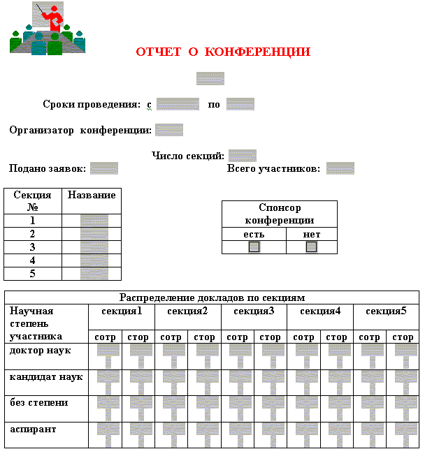 Форма содержит два поля "флажок" в таблице c заголовком Спонсор конференции