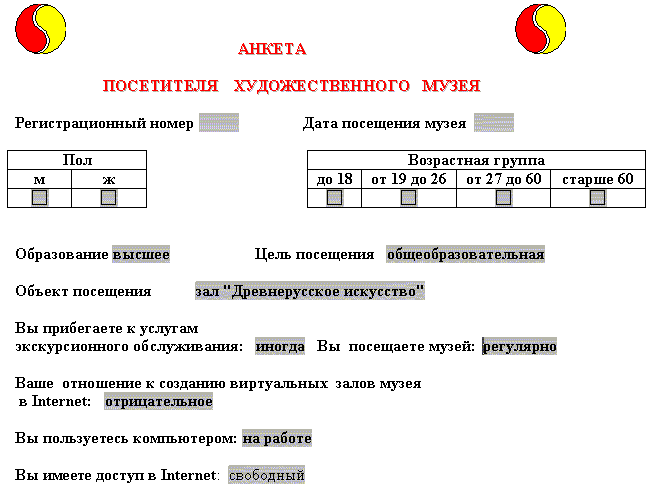 Форма содержит поля "флажок" в таблицах Пол и Возрастная группа