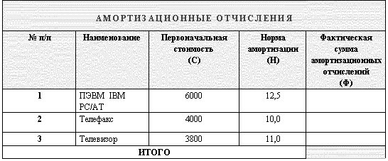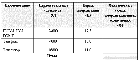 Заполните столбец Фактическая сумма амортизационных отчсилений Таблицы 2. Фактические суммы амортизационных отчислений вычислите по формуле: Ф = С/100*H.