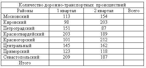 Просуммируйте данные Таблицы 2 по строчкам и столбцам, заполните столбец Всего и строку Итого.