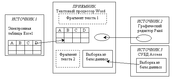 приемник или клиент (адресат) – приложение, где находится главная часть составного документа, и куда вставляются объекты из других приложений (источников).