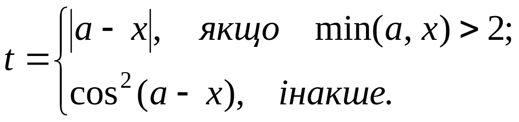 Скласти блок-схему та програму обчислення значення функції. Ввести вхідні дані та вивести на екран вхідні дані та значення функції.