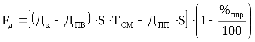 т.е количество наименований выпускаемых на участке деталей при полной загрузке оборудования равен m д .