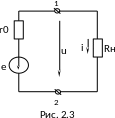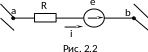 Если участок цепи содержит источник э.д.с. (рис. 2.2), то следует учитывать, что при переходе от отрицательного зажима источника э.д.с. к положительному потенциал повышается на величину э.д.с. источника. При переходе в обратном направлении потенциал понижается на величину э.д.с. источника независимо от направления тока, например,