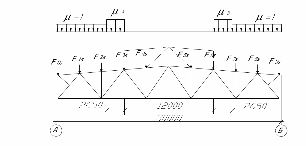 Рисунок 6.1 – Постоянная нагрузка на ферму.