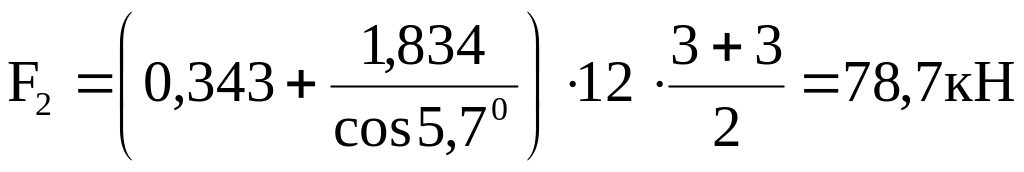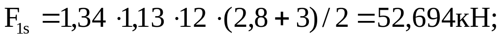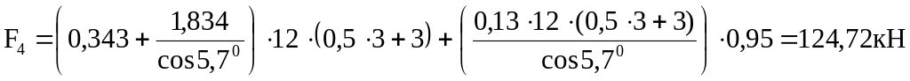 Н1 = 30,11+ (30,39+34,25-3,59+9,65+34,23)0,9=124,55 кН;